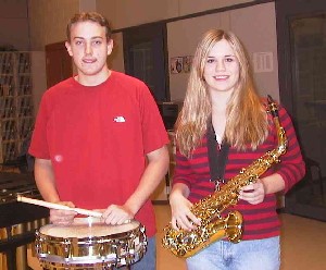 Nick Dettman, percussion (Batavia H.S.) and Sara Gregory, saxophone (West Aurora H.S.) |